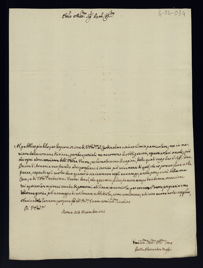 Lettere di congratulazioni per la promozione di sua eccellenza al cardinalato