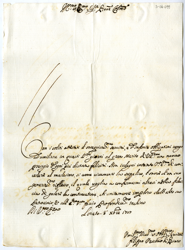 Lettera di Filippo vescovo di Pesaro ad Annibale Albani (1707 dicembre 8)