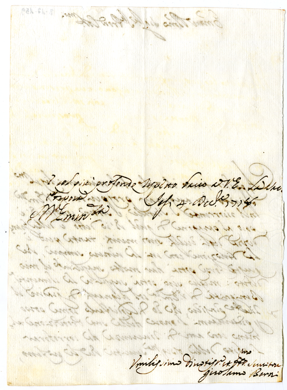 Lettera di Girolamo Berni al cardinale Annibale Albani (1718 dicembre 4)