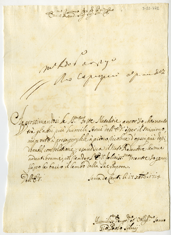 Lettera di Giovanni Paolo Silvi al cardinale Annibale Albani (1714 dicembre 17)