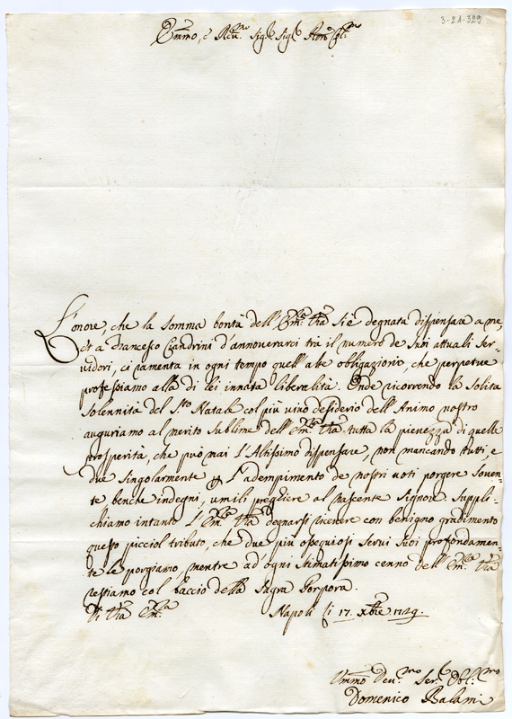 Lettera di Domenico Balami al cardinale Annibale Albani (1729 dicembre 16)