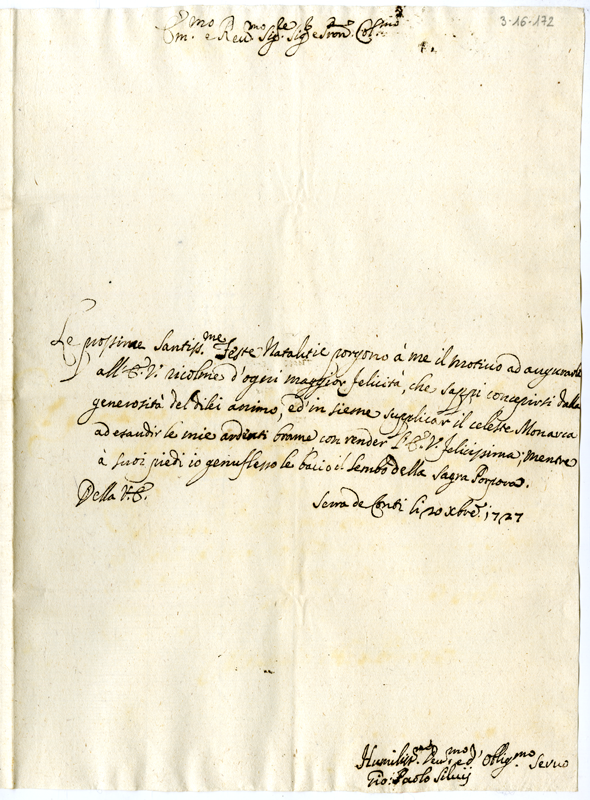 Lettera di Giovanni Paolo Silvi al cardinale Annibale Albani (1727 dicembre 20)