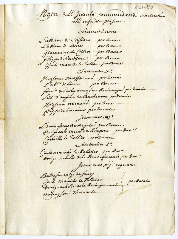 Nota dell'Indulti commendandi conceduti all'infrascritte persone (1691-1700)
