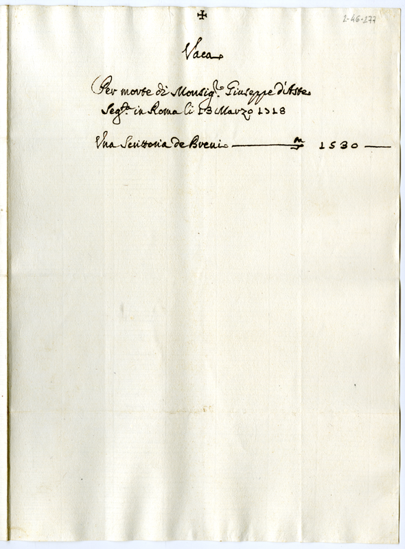 Beneficio vacante per morte di monsignor Giuseppe d'Aste (1718 marzo 13)