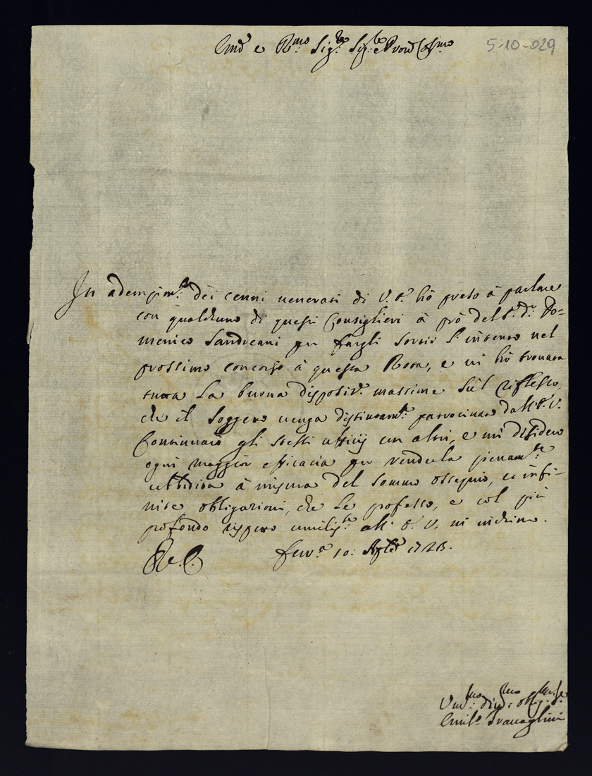Lettere di raccomandazione. 1710 - 1723