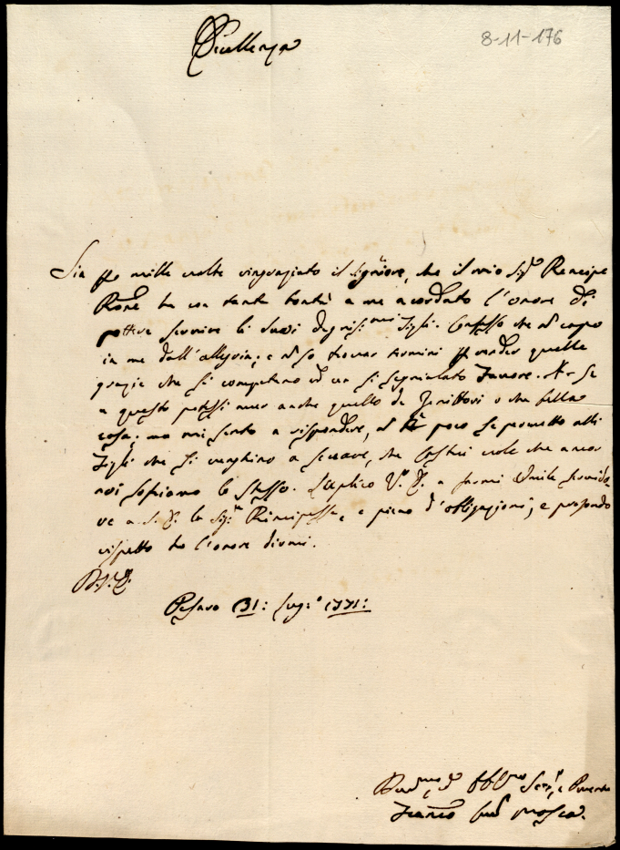 Lettere ricevute in Urbino dal Signor Principe Orazio Albani ultimo di questo nome nell'anno 1771