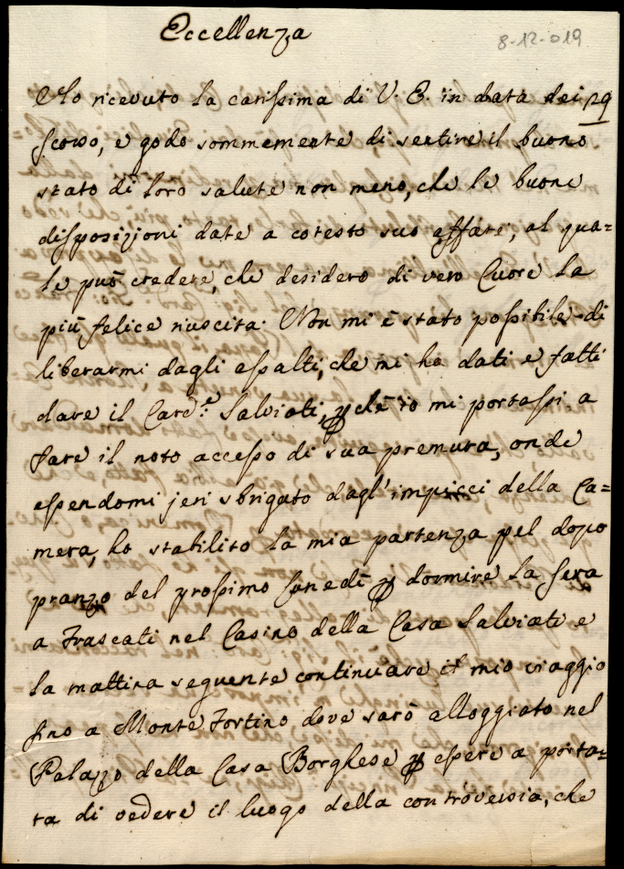 Lettere ricevute in Urbino nella permanenza in Urbino nei mesi di maggio, giugno e luglio 1777