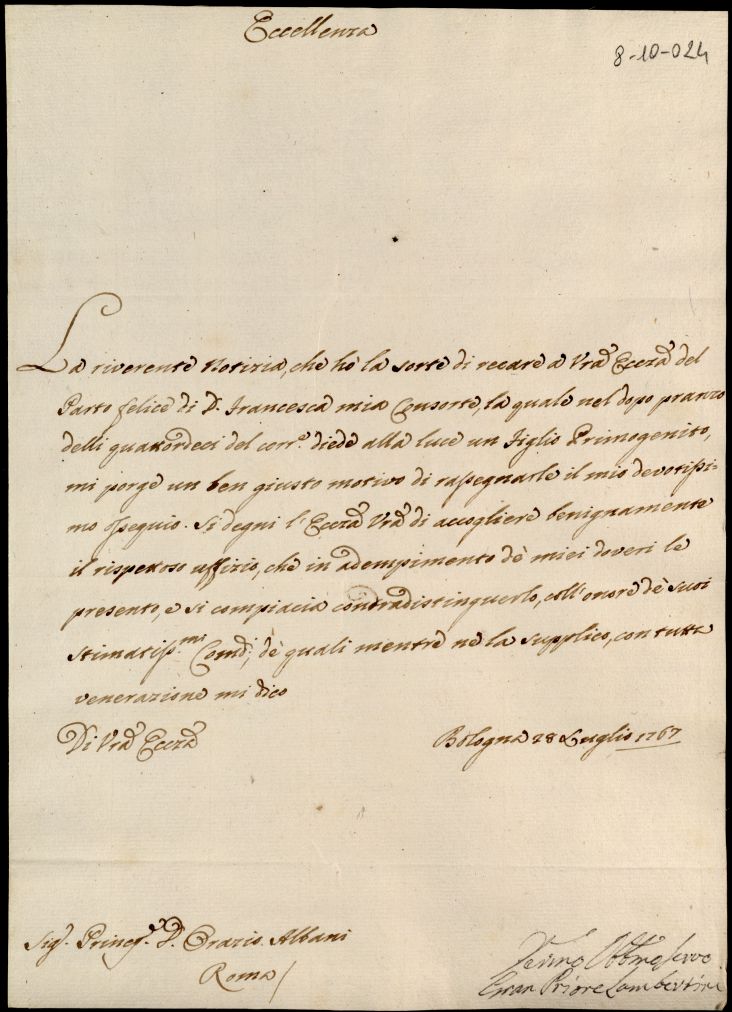 3. Lettere ricevute in Urbino dal Signor Principe Orazio Albani ultimo di questo nome nell'anno 1767