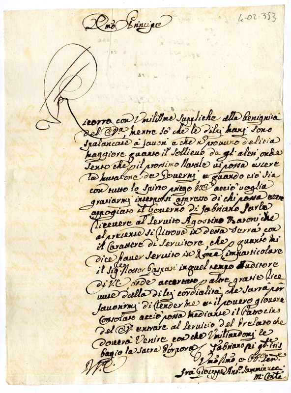 Lettera di fra Giuseppe Antonio Samminucci al cardinale Annibale Albani (1715 novembre 21)