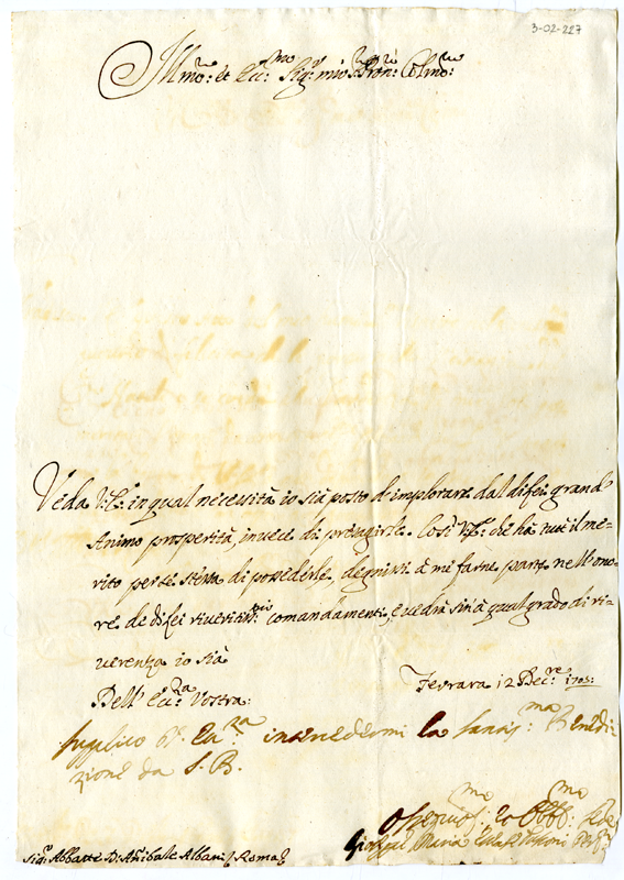 Lettera di Giuseppe Maria Paterni Persiani ad Annibale Albani (1705 dicembre 12)