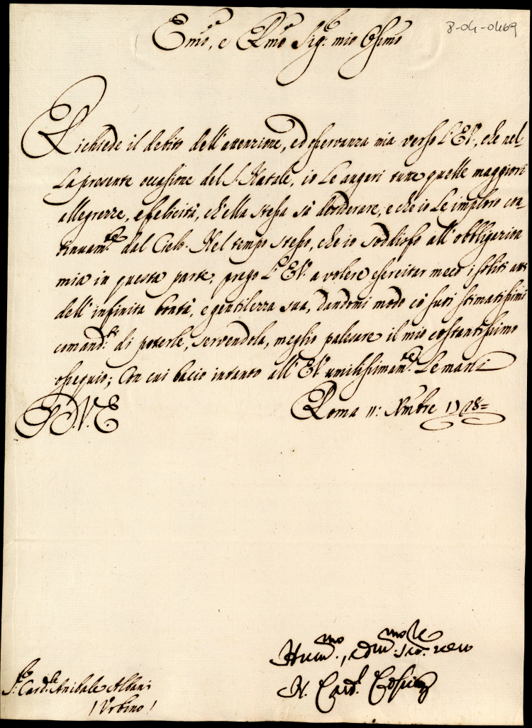3. Lettere di diversi all'eccellentissimo signor cardinale S. Clemente dell'anno 1723, 1727 e 1728