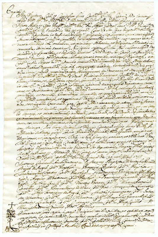Attestato dei dignitari e del capitolo della cattedrale della chiesa di Caiazzo in favore dell'abate Guidone Foschi autenticato dal notaio Marco Antonio Covelli. Copia (1712 maggio 30)