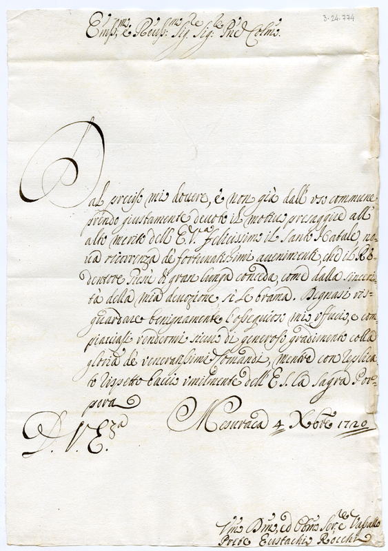 Lettera di Eustachio Rocchi al cardinale Annibale Albani (1720 dicembre 4)