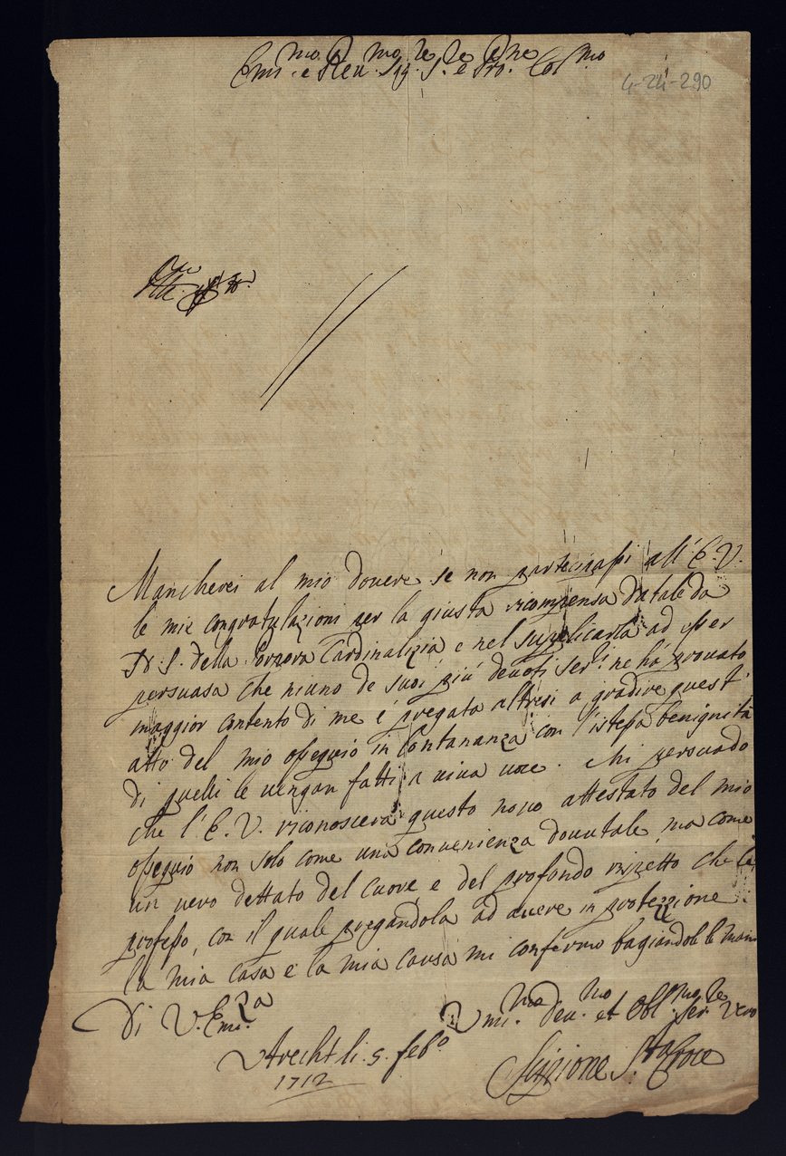 Lettere di congratulazioni per la promozione di sua eccellenza al cardinalato