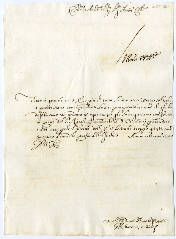 Lettera degli anziani e consiglio della città di Ancona al cardinale Annibale Albani (1723 dicembre 12)