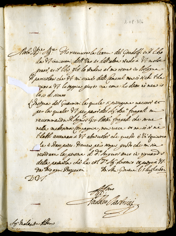 Lettera di Barberini Taddeo a Malatesta Albani (1642 luglio 5)
