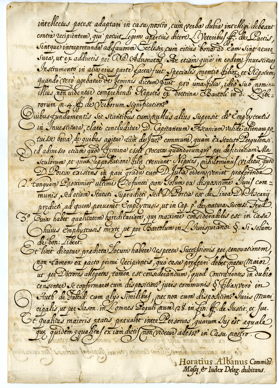 Lettera di Orazio Albani in relazione all'attribuzione di una enfiteusi (1600-1650)