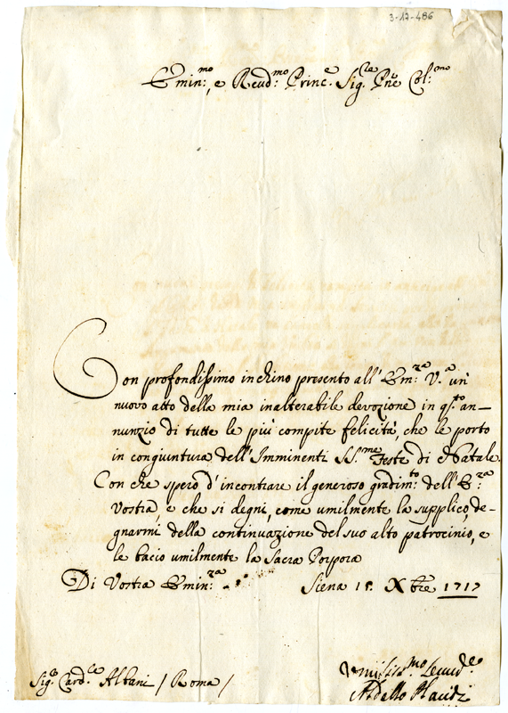 Lettera di Aldello Placidi al cardinale Annibale Albani (1717 dicembre 15)