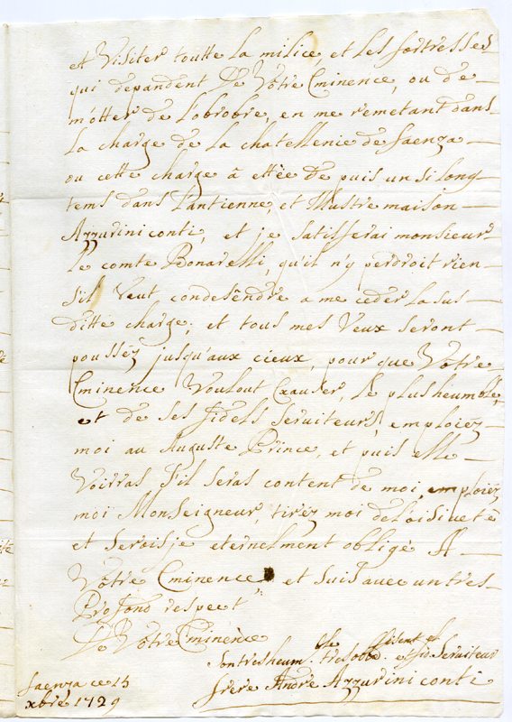 Lettera di Andrea Azzurini al cardinale Annibale Albani (1729 dicembre 15)