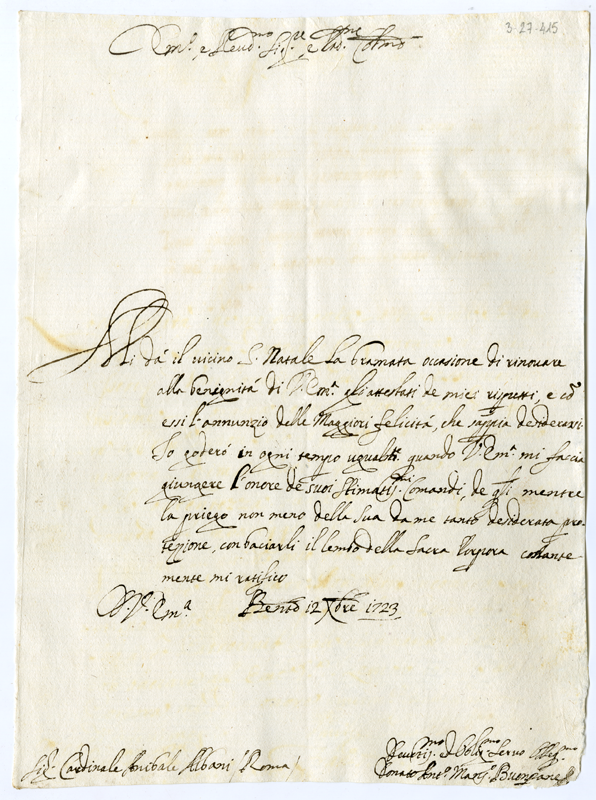 Lettera di Donato Antonio Buonpane al cardinale Annibale Albani (1723 dicembre 12)