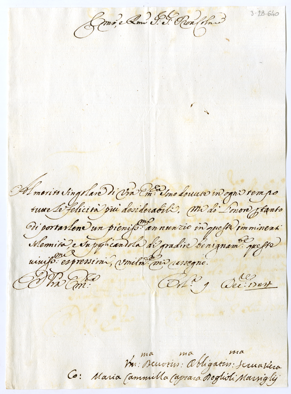Lettera di Maria Camilla Caprara Doglioli Marsiglii al cardinale Annibale Albani (1724 dicembre 9)