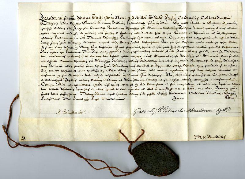 Pergamena del cardinale Colloredo al maestro generale dei frati dell'Ordine dei Predicatori (1694 giugno 1)