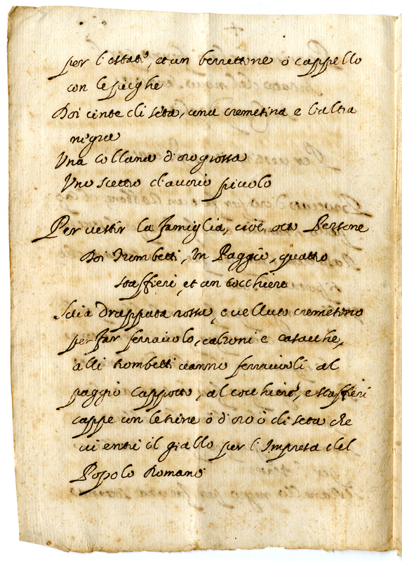 Provisioni che si fanno per l'entrata del novo Senatore in Campidoglio (sec. XVII)