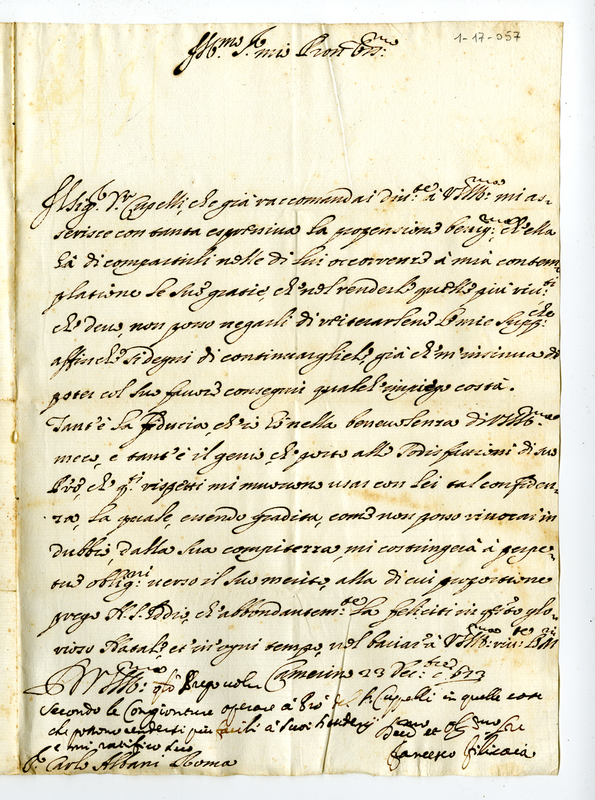 Lettera di Francesco Filicaia a Carlo Albani (1673 dicembre 23)
