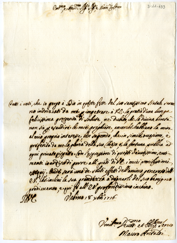 Lettera di Mauro Antaldi al cardinale Annibale Albani (1716 dicembre 18)
