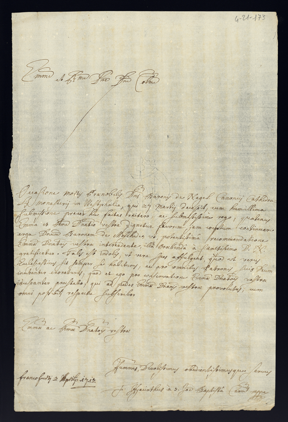 1712. Lettere diverse. Semestre primo