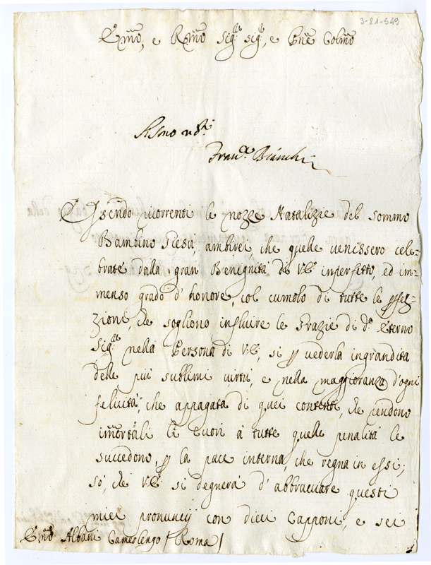 Lettera di Agostino Campanari al cardinale Annibale Albani (1729 dicembre 14)