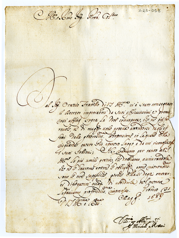 Lettera del Mensale e Rettori a Illustrissimo e Reverendissimo Signore Padrone Colendissimo (1688 maggio 31)