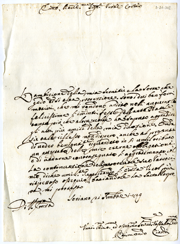 Lettera di Raimondo Ciardi al cardinale Annibale Albani (1729 dicembre 21)
