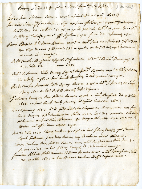 Elenco di nomi dei Datarii della Sacra Penitenzieria dopo la riforma di Papa Pio V