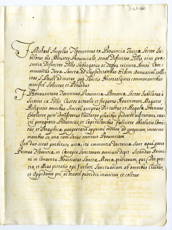 Informazioni su fra Michel'Angelo Fiorentino e fra Bonventura Faentino (1700-1721)