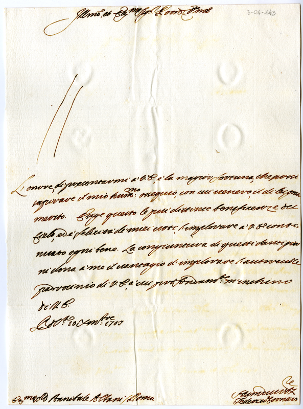 | bo.livello.titolo2 | Archivio Albani|Lettere di buone feste|"Buone Feste 1707"|Documenti contenuti | |