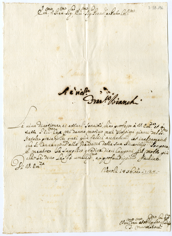 Lettera di Marco Noce al cardinale Annibale Albani (1724 dicembre 18)