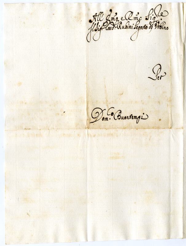 Lettera di Domenico Buontempi al cardinale Rubini legato di Urbino (1690-1693)