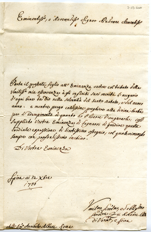 Lettera al cardinale Annibale Albani (1730 dicembre 12)