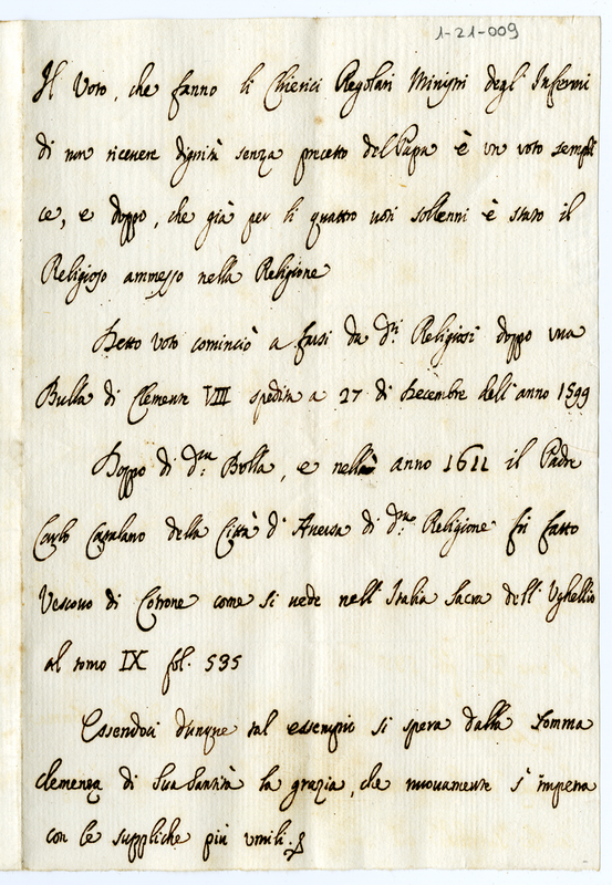 | dc.title.alternative | Supplica dei chierici regolari ministri degli infermi di avere una nomina vescovile dal Papa nonostante un voto semplice contrario | |