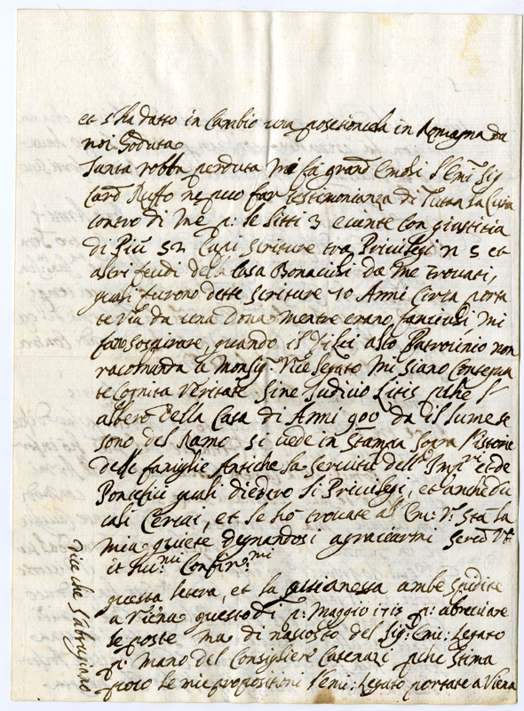 Copia di lettera di Luigi Bonavidi al Cardinale Annibale Albani (1715 aprile 24)