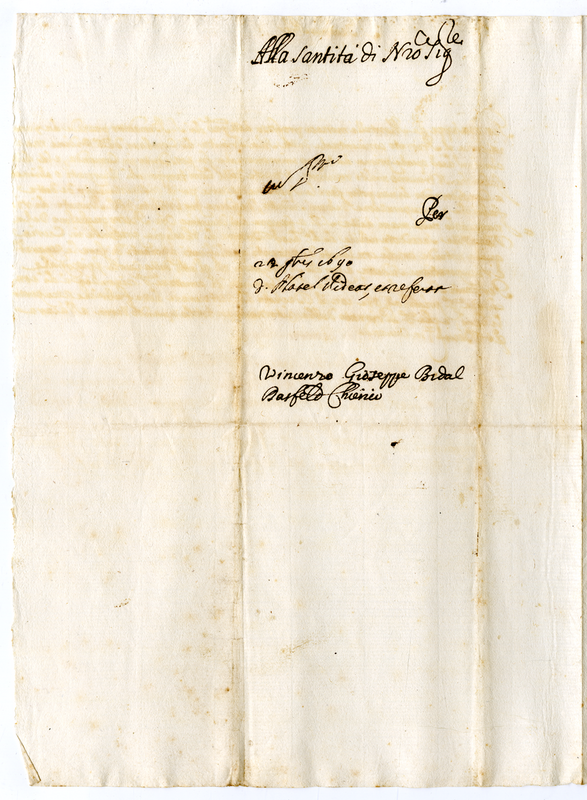 Lettera di Vincenzo Giuseppe Bidal Dasfeld alla Santità di Nostro Signore (1691-1700)