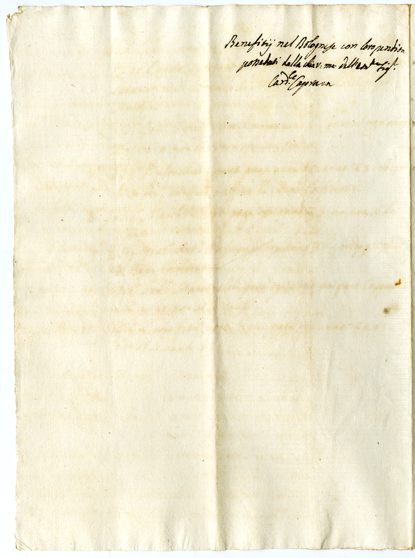 Beneficii nel Bolognese con loro rendita posseduti dalla chiara memoria dell'Eminentissimo Signor Cardinale Caprara (1706-1711)
