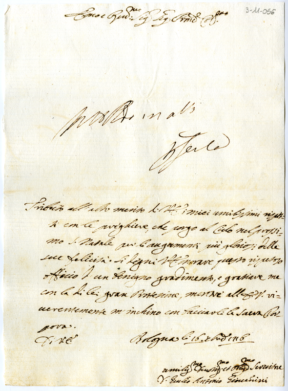 Lettera di Giulio Antonio Giovannini al cardinale Annibale Albani (1716 dicembre 16)