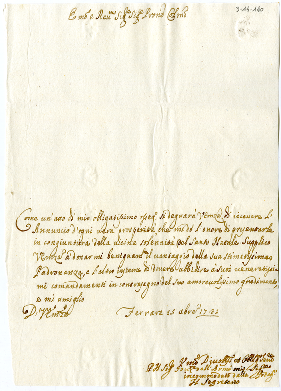 Lettera al cardinale Annibale Albani (1731 dicembre 15)