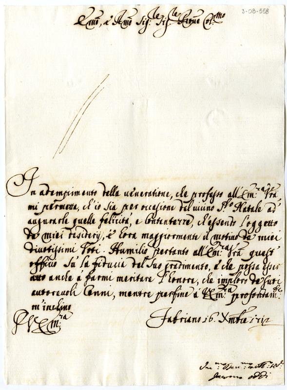 Lettera di Giacomo Oddi al cardinale Annibale Albani (1712 dicembre 16)
