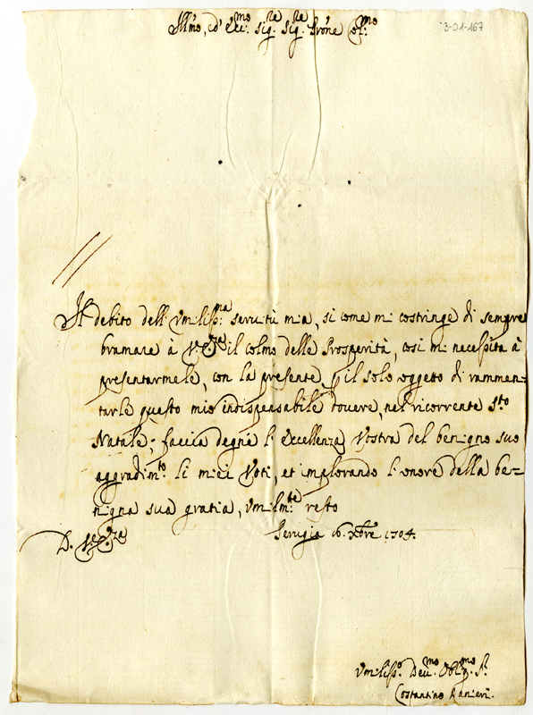 Lettera di Costantino Ranieri ad Annibale Albani (1704 dicembre 16)