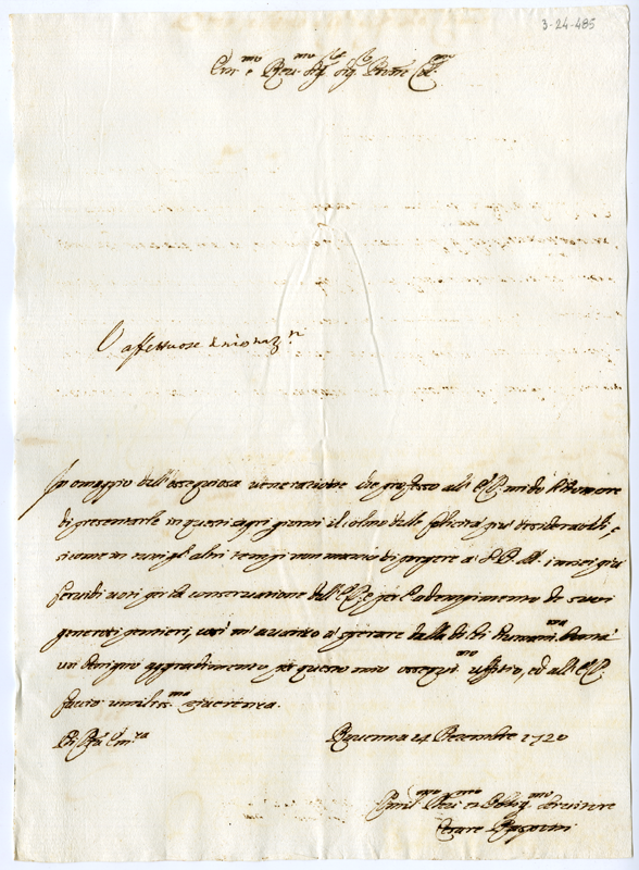 Lettera di Cesare Rasponi al cardinale Annibale Albani (1720 dicembre 14)
