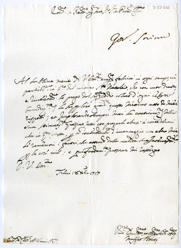 Lettera di Maffeo Bonti al cardinale Annibale Albani (1717 dicembre 18)