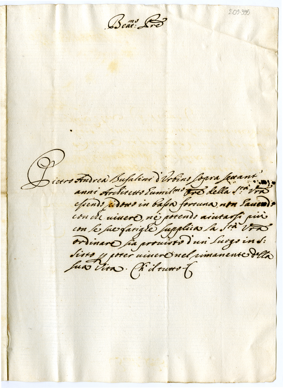 Lettera di Pietro Andrea Bufalini a Innocenzo XI (1676-1689)